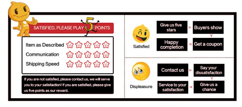 4. Если у вас есть какие-либо вопросы во время покупок, пожалуйста, не стесняйтесь обращаться к онлайн-сервисному персоналу. Из-за разницы во времени вы также можете оставить нам сообщение. Персонал ответит вам во время работы, и мы будем служить вамОт всей души.