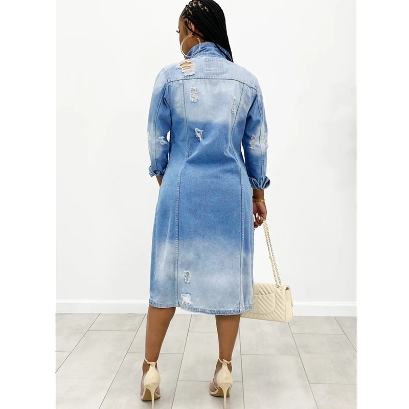 Женская длинная джинсовая куртка с дырками, Кардиган с длинным рукавом, большие размеры, модель Ddlg на весну и осень