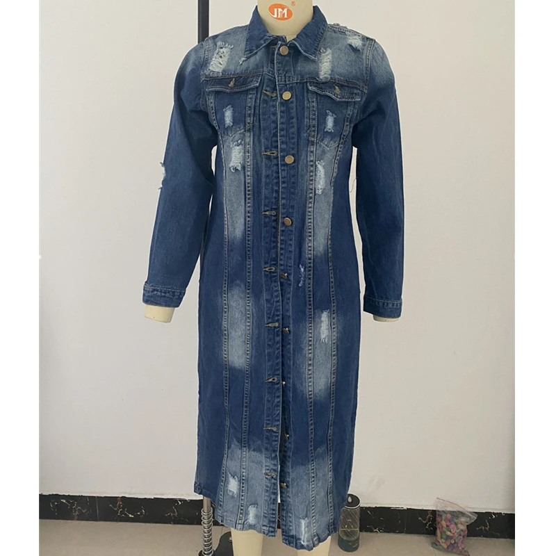 Длинные джинсовые куртки женские осенние сексуальные рваные джинсы ...