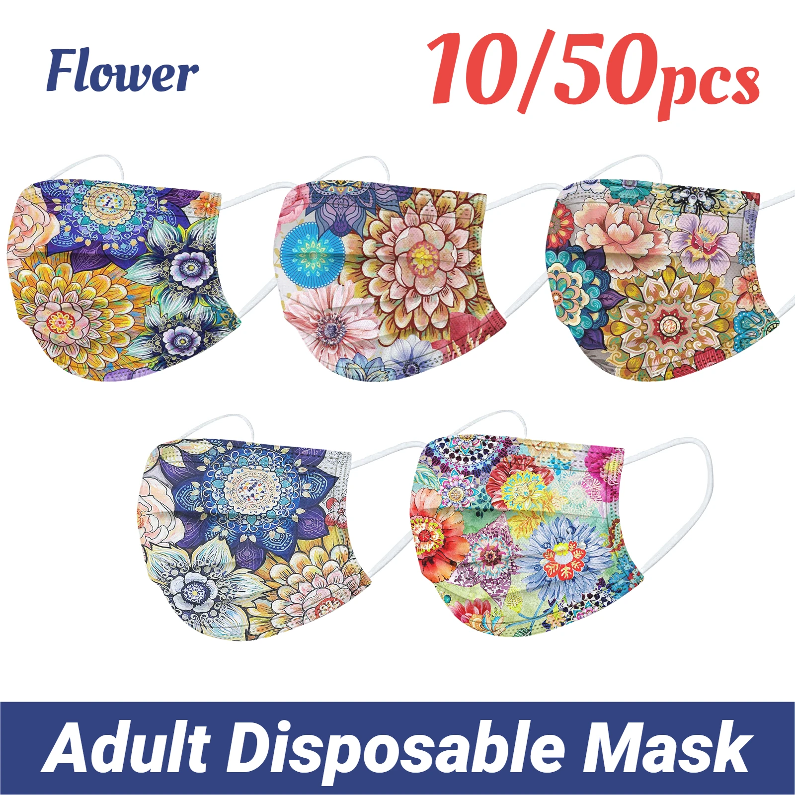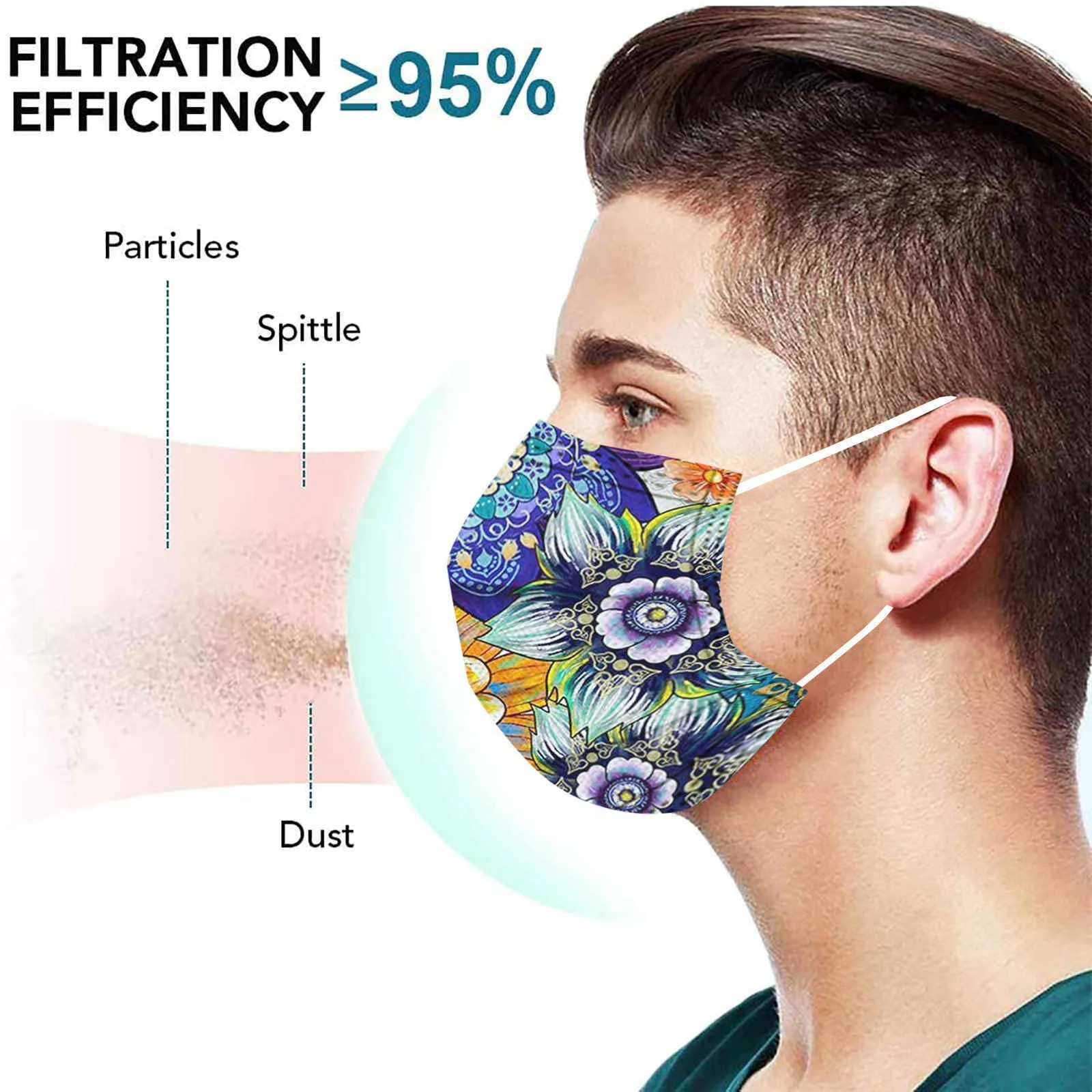 Маска одноразовая для взрослых, защитная трехслойная маска с принтом мандалы, с цветами, дышащая, от пыли, маски, 1050 шт.