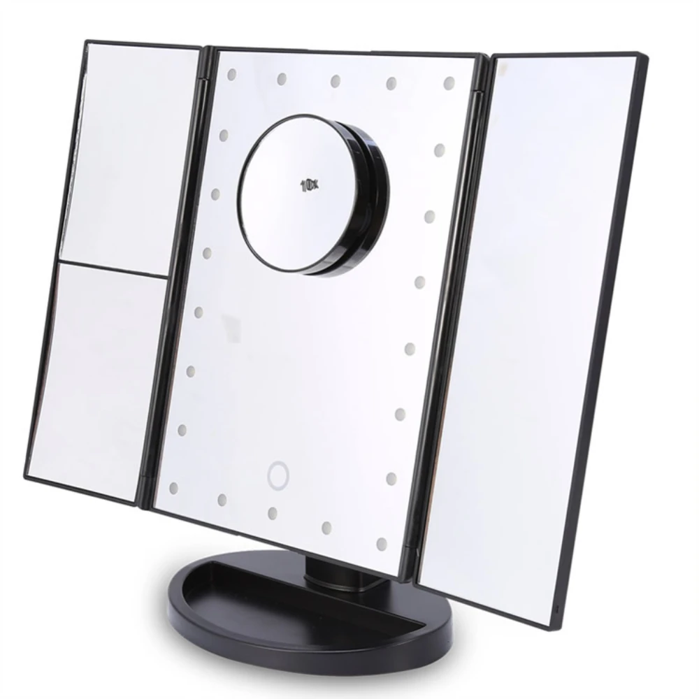 22 светодиодный зеркало для макияжа сенсорный Экран настольное зеркало с светильник 3 раза Регулируемый косметическое зеркала USB Dual Питание 3X10X