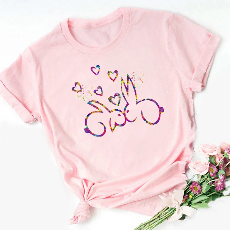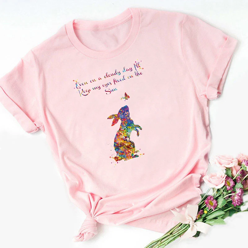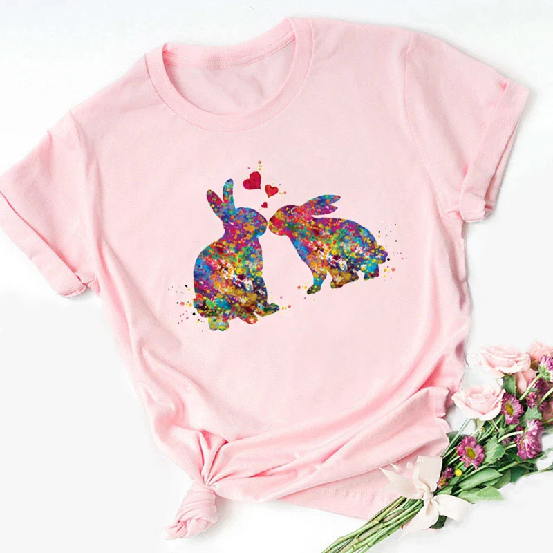 Футболка с милым мультяшным принтом кролика, милая забавная футболка Kawaii Love с животными, летние топы 2021, лидер продаж, уличная одежда в стиле Харадзюку
