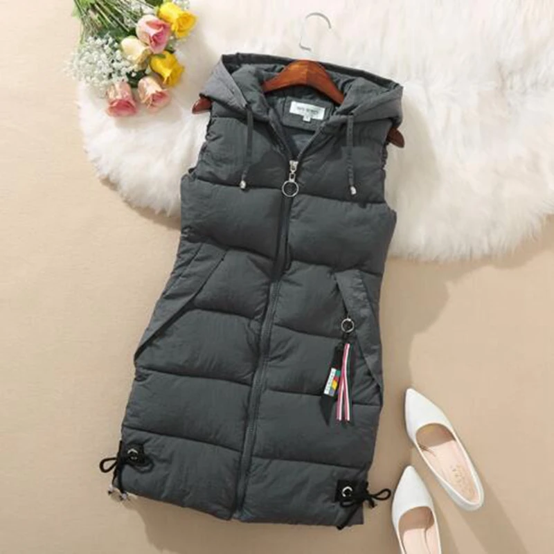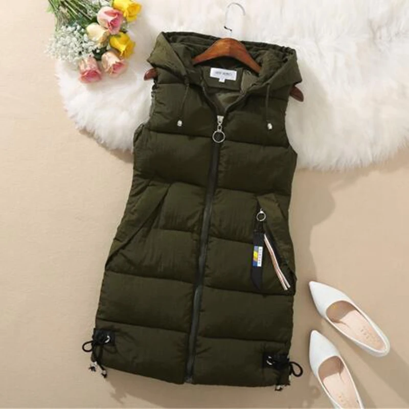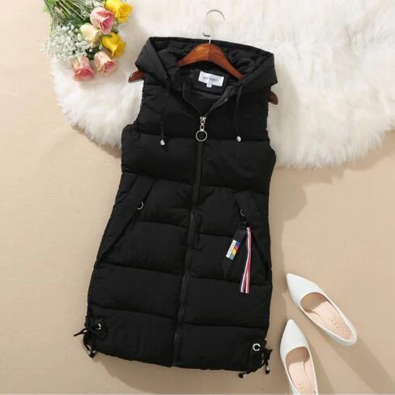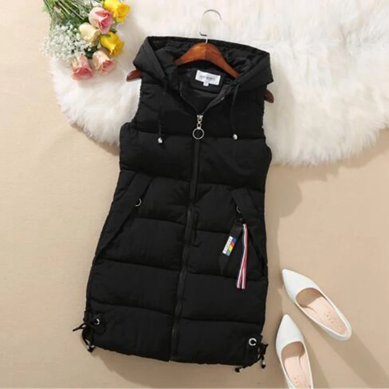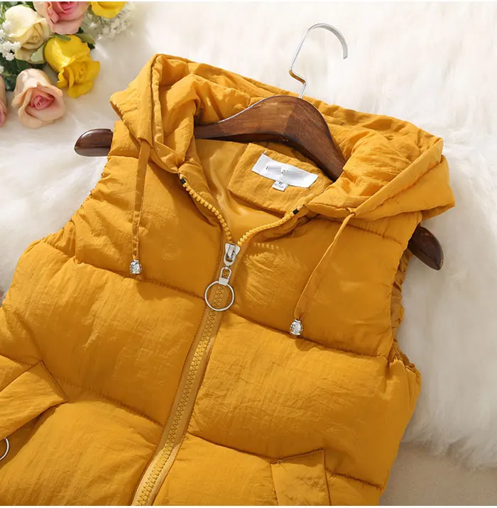 Размера плюс S -3XL Женский жилет зимняя куртка с карманами пальто с капюшоном теплый повседневный жилет с хлопковой подкладкой Женский приталенный жилет без рукавов