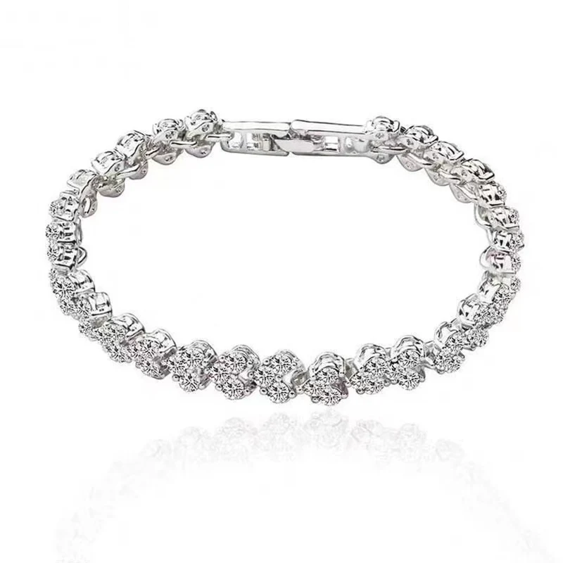 Браслет-цепочка Женский, розовое золотосеребро, с римскими кристаллами