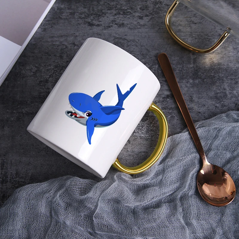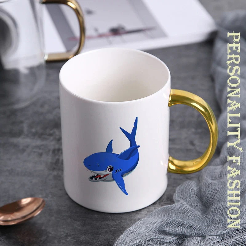400 мл креативная керамическая кружка синего цвета с узором Акула; Друзей кружка завтрак чашка кофе бытовой пара стакана воды по KTZW-040