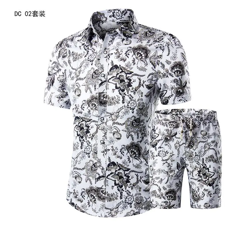 Мужская Летняя одежда в новом стиле, рубашка с коротким рукавом и шорты с принтом, модная повседневная пляжная одежда большого размера для мужчин, одежда из 2 предметов