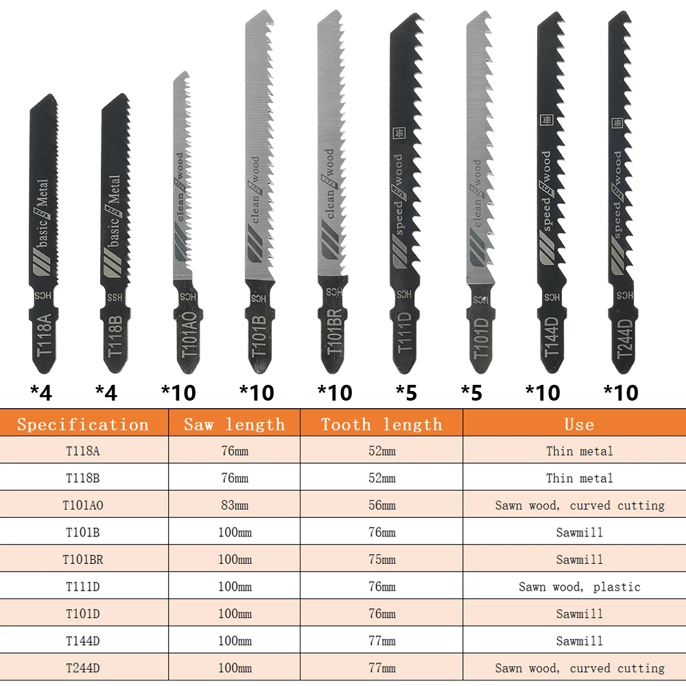 Набор разнообразных Т-образных лезвий для лобзика, лезвия для быстрой резки, HCS + HSS, столешница для резки древесины, Т-образный хвостовик, аксессуары для электроинструментов сделай сам