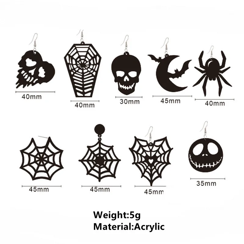 Хэллоуин, черные акриловые серьги с черепом для женщин, костюм на Хэллоуин, косплей, паук, паутина, летучая мышь, тыква, луна, гроб, висячие серьги