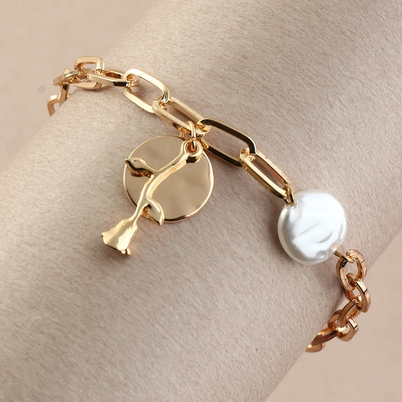Ретро стиль, покрыто розовым цветком Cbarms браслеты из нержавеющей стали для женщин в стиле бохо, большое Золотое наполнение из звеньев в едином положении во время занятий легкой атлетикой, мужские браслеты в стиле панк ювелирные изделия для девушек, пара подарок любимым