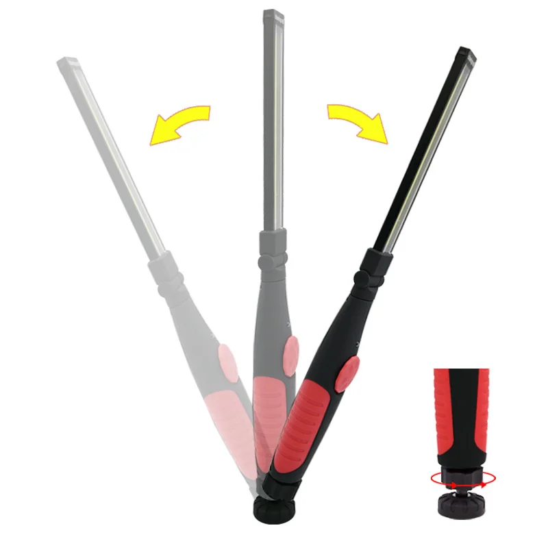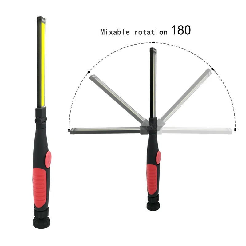 [Обучающее видео: светильник бар вращающимся и вибрирующим валом для анти-скольжения функции:], за исключением каретка 360 ° Вращение функция, COB рабочий светильник также включает в себя светильник Бар 140 ° вращение, которая обеспечивает более углы освещения. Кроме того, противоскользящий дизайн делает тонкий фонарик более удобным.