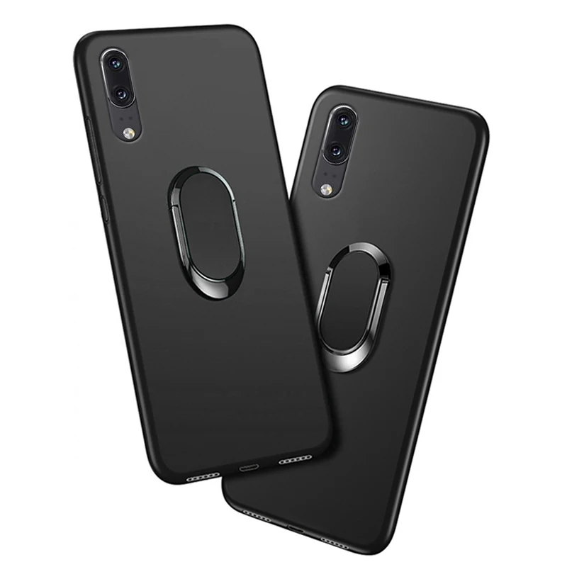 Чехол для Huawei P20 чехол EML-L09 L09C L29 AL00 цвета: красный, синий, черный классический палец кольцо 360 градусов вращения и мягкого силикона