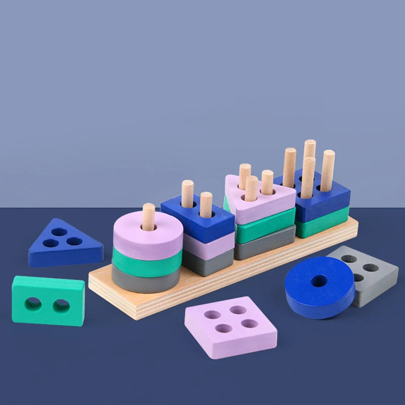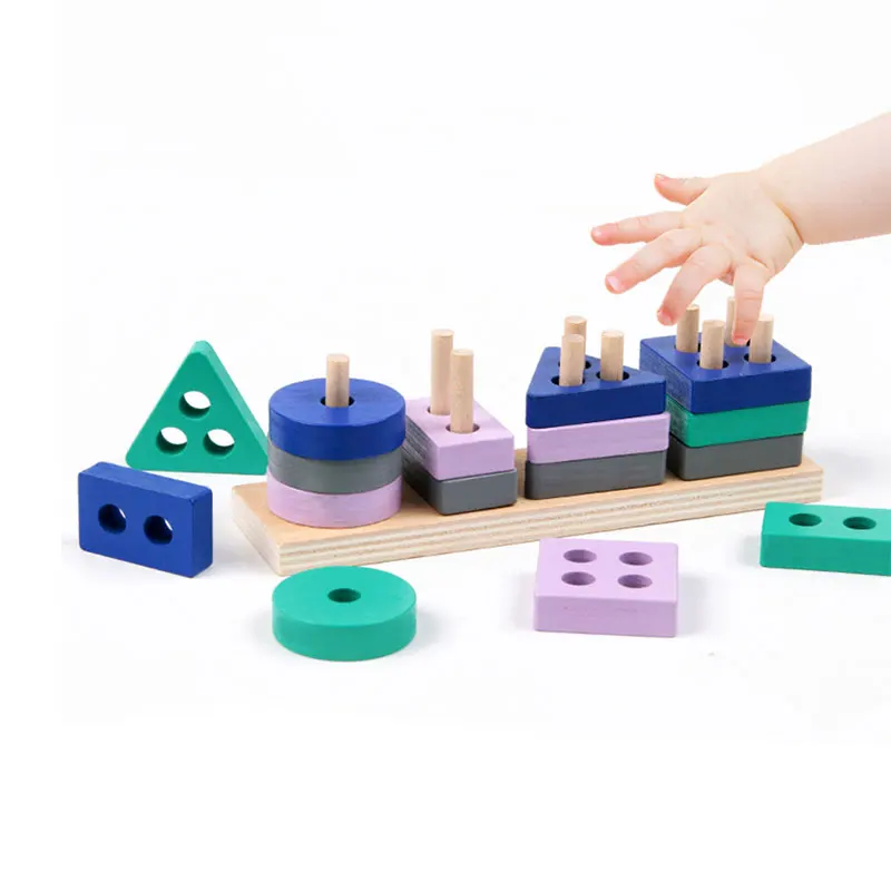 Игрушка Монтессори, деревянные строительные блоки, цветовая форма, детские головоломки, игрушки для детей, мальчиков и девочек