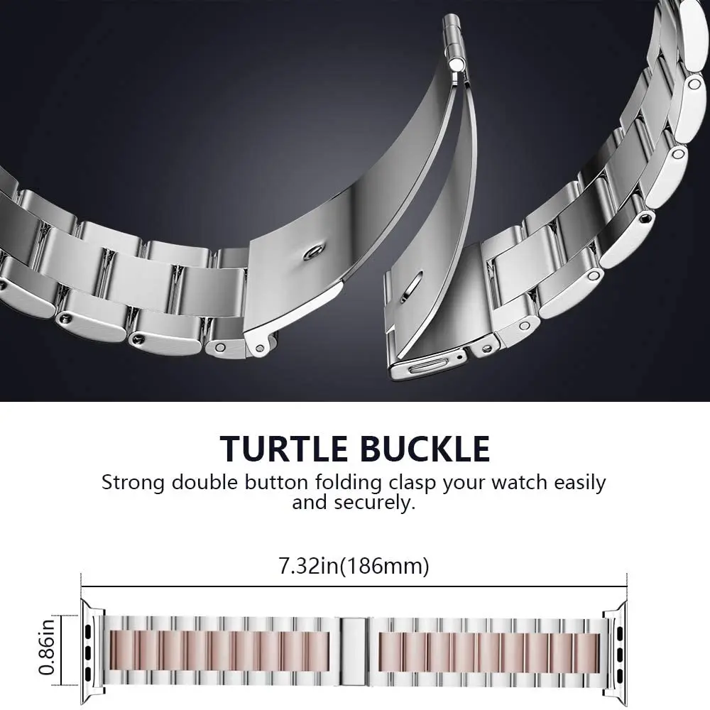Особенности: 1. Размер: для apple watch 38 мм 42 мм 40 мм 44 мм 41 мм 45 мм 2. Подходит как для мужчин, так и для женщин, элегантный внешний вид дает вам прекрасный опыт. 3. Премиум Материал: ремешок для часов из нержавеющей стали изготовлен из высококачественной нержавеющей стали 304, высокотехнологичной поверхности, роскоши, благородства и долговечности, а 4. Регулируемый ремень Длина: bandfits размер запястья 5,5-8,3 дюймов. Ремешок для часов может быть укорочен или расширен с помощью прикрепленного инструмента для удаления звеньев, идеально подходящего для вашего запястья. 5. Посылка включает в себя: 1 * ремешок для часов (часы в комплект не входят) 1 * Инструмент для разборки (бесплатный подарок не поддерживает послепродажное обслуживание)