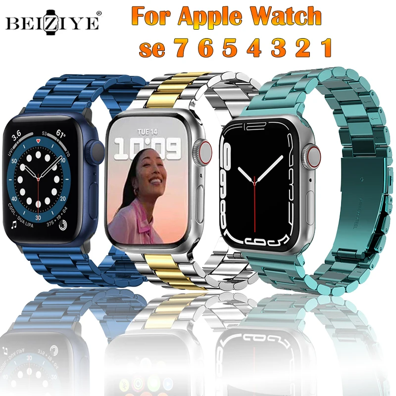 Ремешок из нержавеющей стали для Apple Watch band, металлический браслет для iWatch SE 7 6 5 4 3, 41 мм 45 мм 40 мм 44 мм 38 мм 42 мм