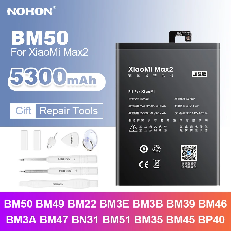 Аккумулятор Nohon BM3L для Xiaomi Mi 9 8 6 Max2 BM50 BM3M BM3E BM3K...