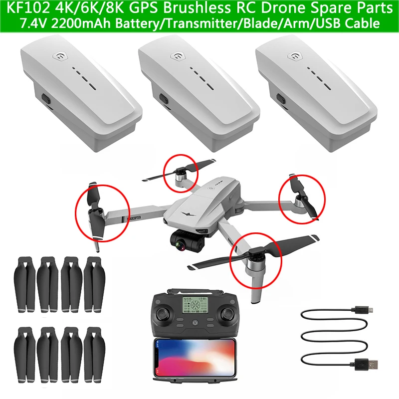 Название позиции: KF102 4K/6K/8K двойная камера RC Дрон запасные части 7,4 V 2200mAh батарея/пропеллер/USB кабель/рука