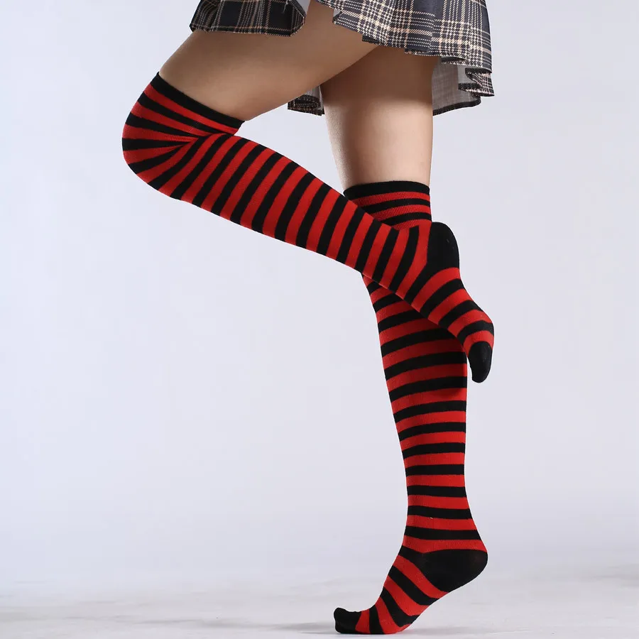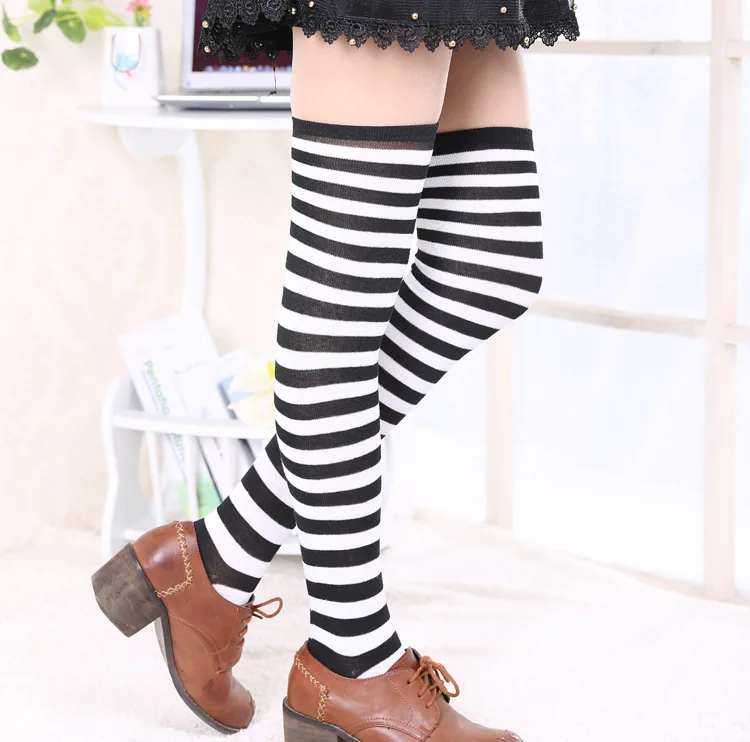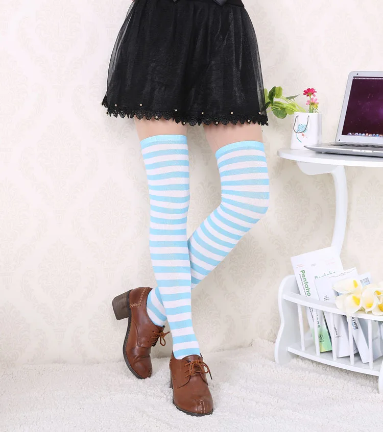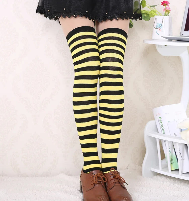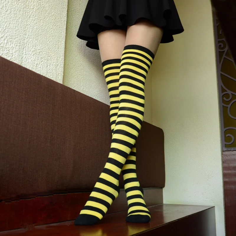 Носки женские хлопковые нескользящие выше колена, милые пикантные с принтом в полоску, милые носки в стиле хип-хоп, 40 цветов