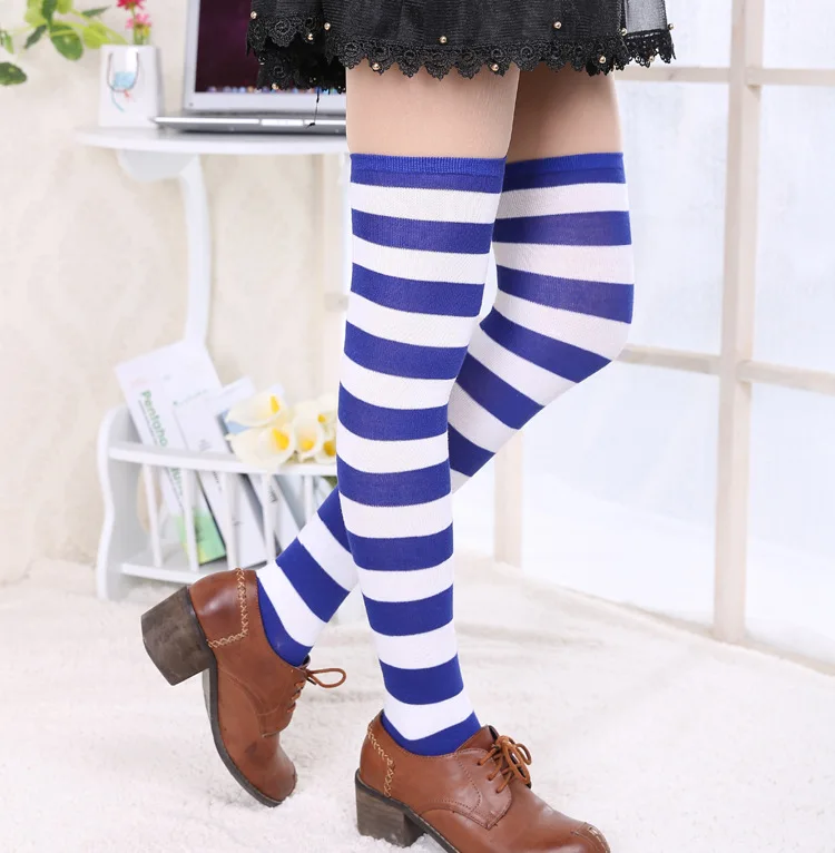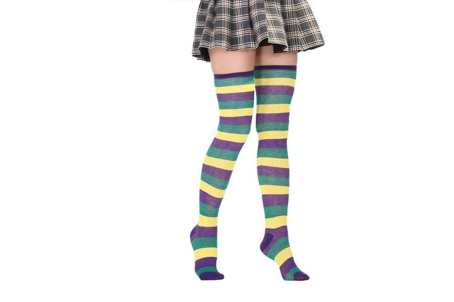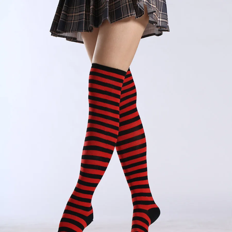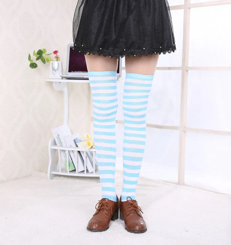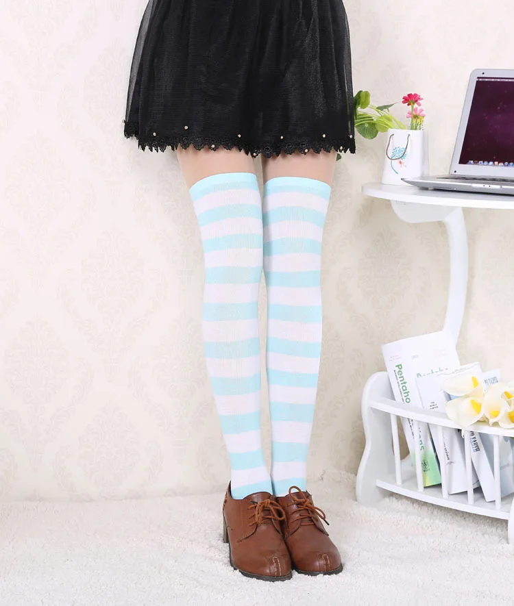 Носки женские хлопковые нескользящие выше колена, милые пикантные с принтом в полоску, милые носки в стиле хип-хоп, 40 цветов