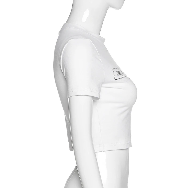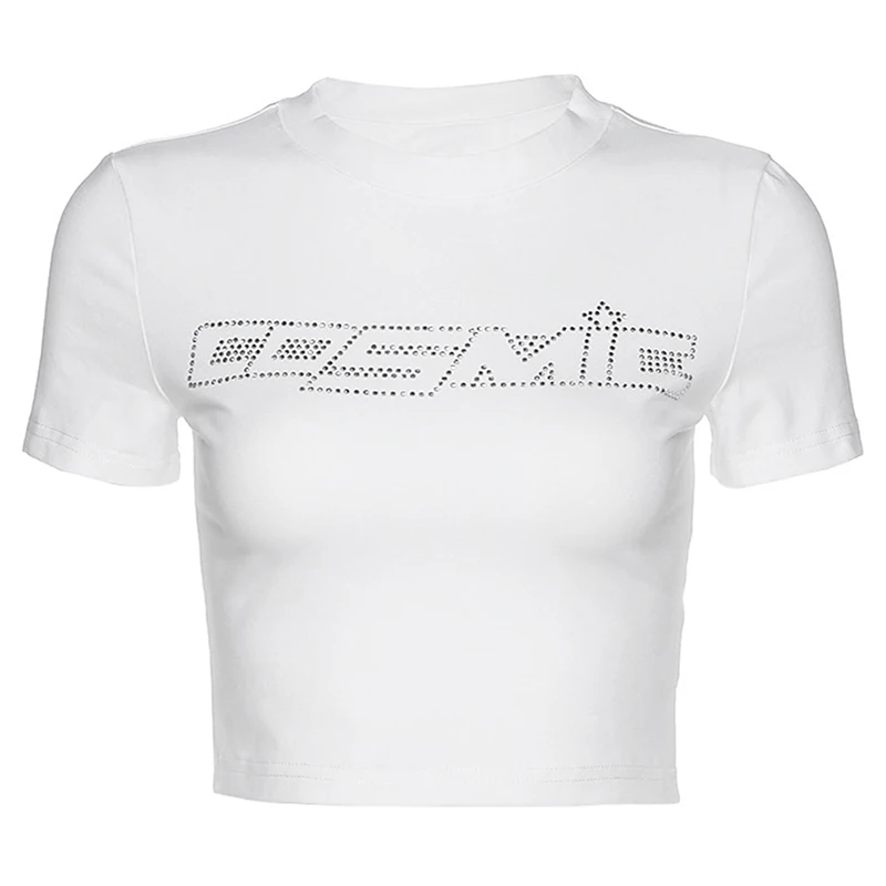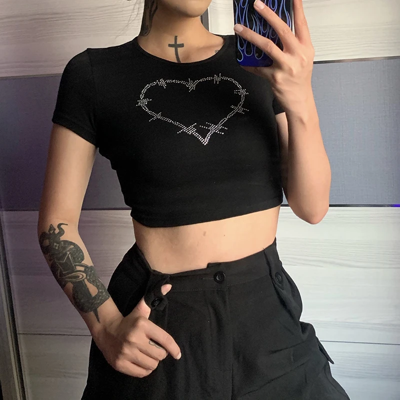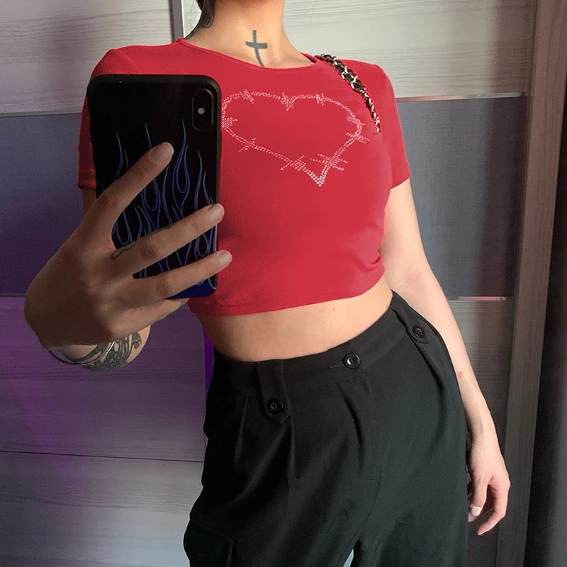 CDJLFH футболка эстетическое Графические футболки женская летняя обувь Harajuku Стразы с принтом сердце, футболка с коротким рукавом с круглым вырезом Топ Футболка