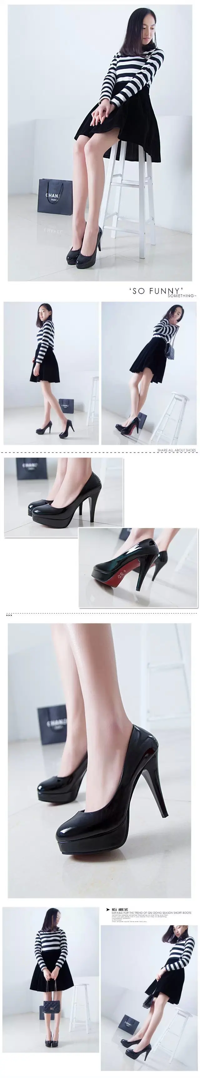 Женские туфли-лодочки; Модные классические туфли из лакированной кожи на высоком каблуке; Свадебные женские модельные туфли на платформе с острым носком; Большие размеры 34-42
