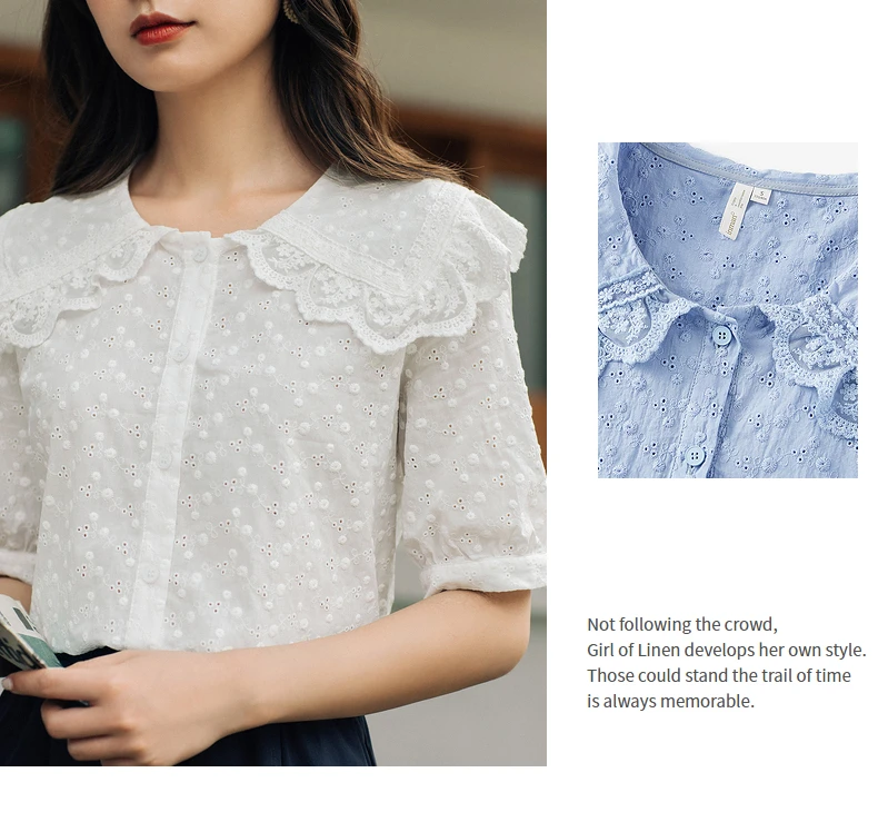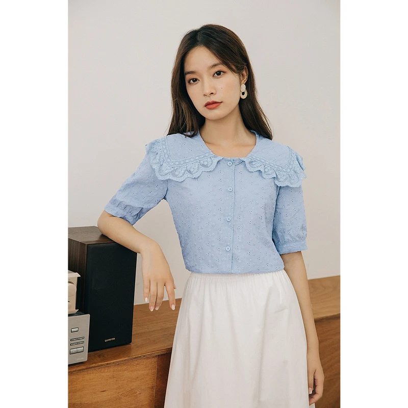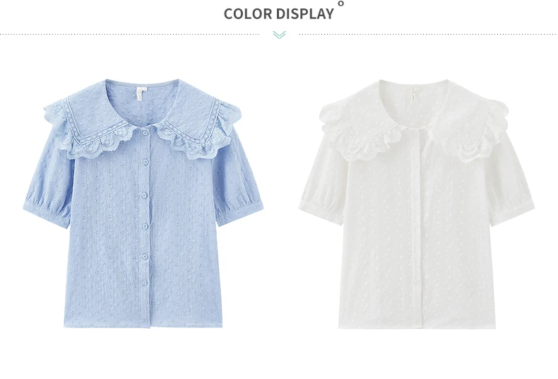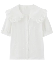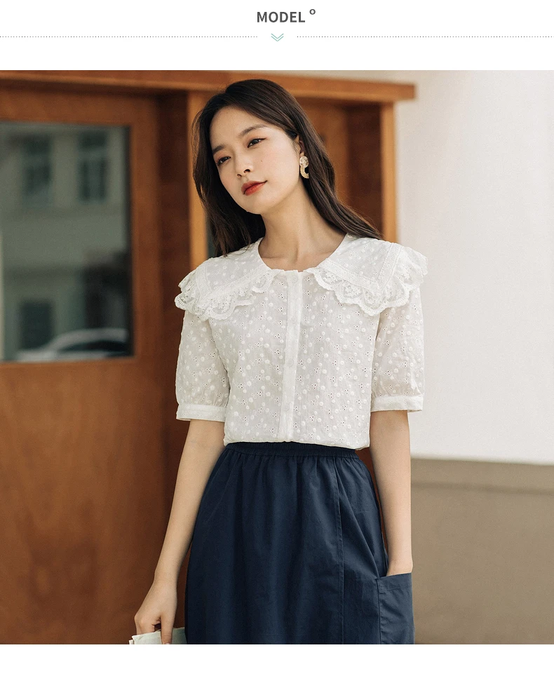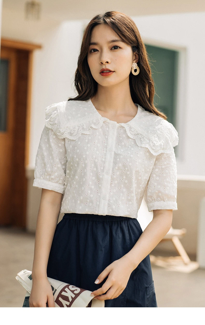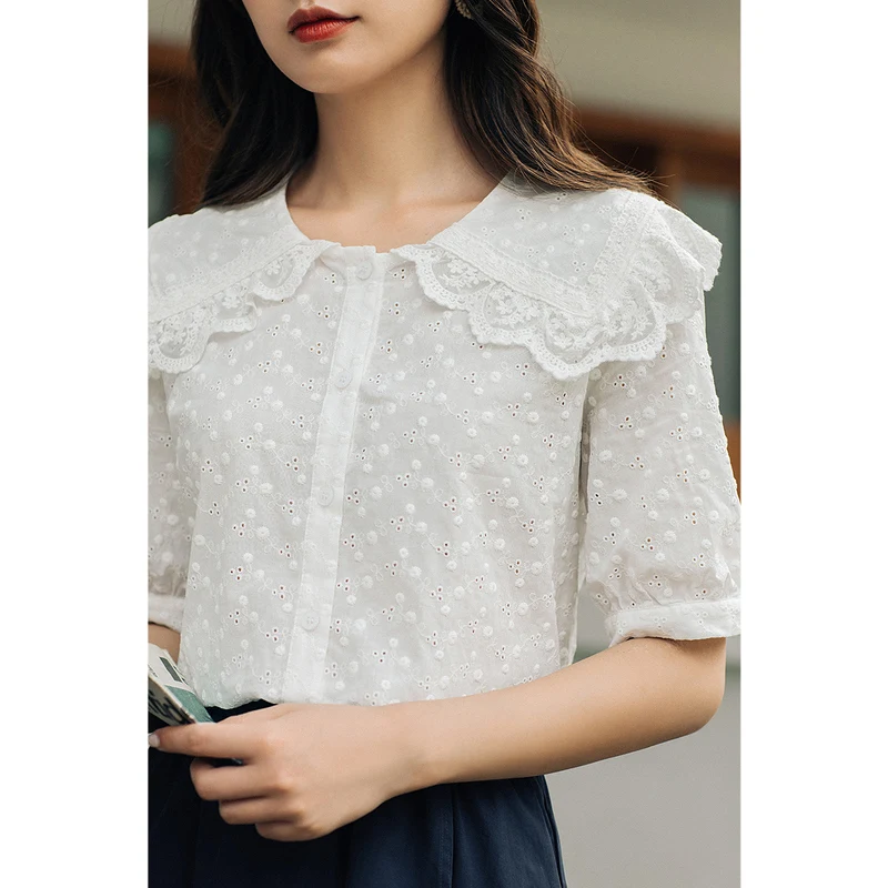 Блузка женская в горошек, жаккардовая Однотонная рубашка с большими лацканами и короткими рукавами, милая белая, в французском стиле, на лето