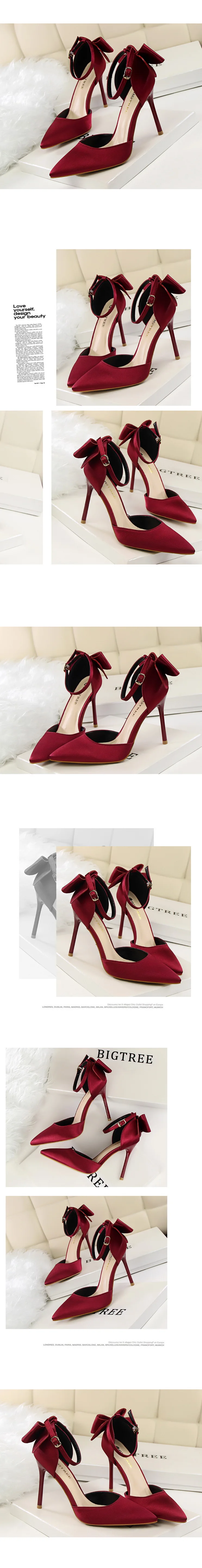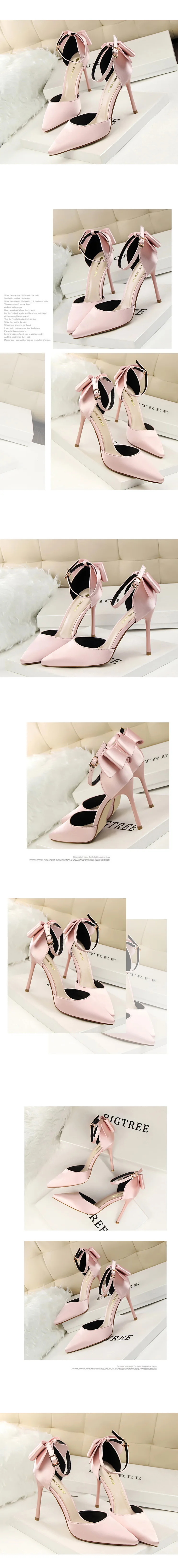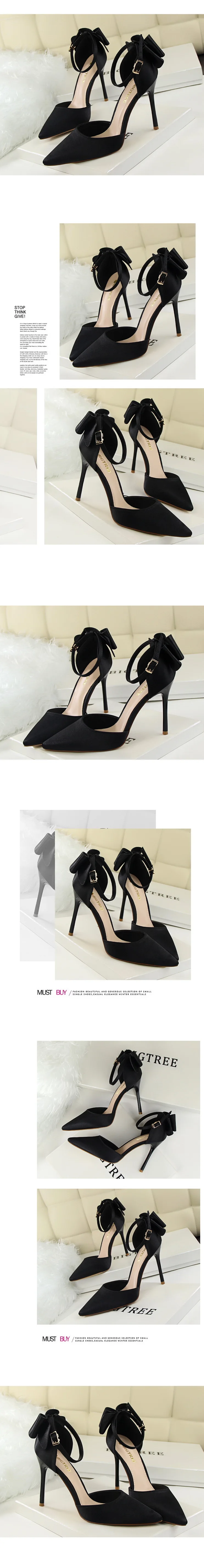 Милые босоножки в Корейском стиле; Коллекция 2021 года; Женские туфли на тонком высоком каблуке с закрытым носком и атласным бантом; Роскошная обувь