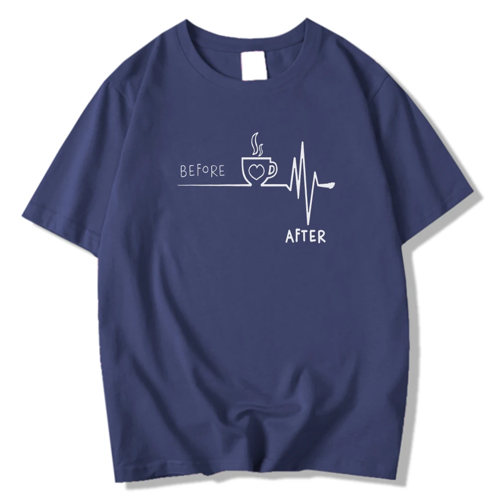 Футболка мужская с принтом раньше после кофе-это жизнь, Повседневная рубашка с рисунком скетчей, уличный Мягкий Топ в стиле аниме, в стиле хип-хоп, с круглым вырезом