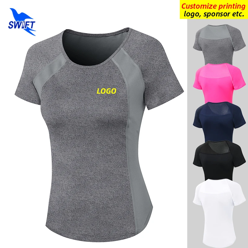Женские беговые рубашки с логотипом на заказ, быстросохнущие спортивные топы для йоги, эластичная Спортивная одежда для тренажерного зала и фитнеса, дышащая футболка