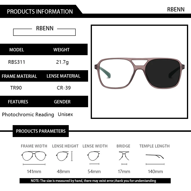 Фотохромные очки для чтения RBENN, для мужчин и женщин, квадратные очки для чтения Пресбиопии из пластика TR90, + 1,75, 2,25, 2,75, 3,5, 4,5, 5,0, 6,0