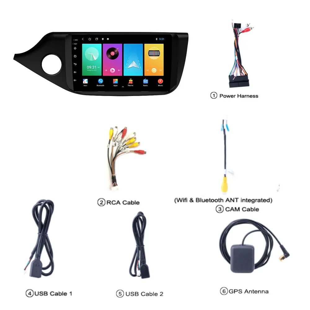 1 х KIA Ceed Android автомобильное радио1 х Кабель питания1 x Антенна GPS1 x вход камеры1 х RCA вход и выход2 x USB кабельРуководство по эксплуатации-1 шт.
