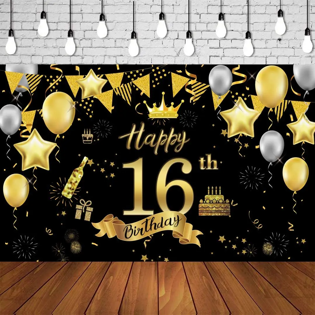 16-й день рождения баннер Вечеринка декорация знак плакат Черное золото поставки для 16-го юбилея фон