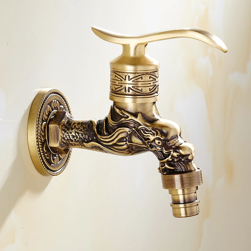 Античный латунный резной кран в виде дракона, садовый кран для стиральной машины, кран для улицы, кран с одним холодным краном 1016