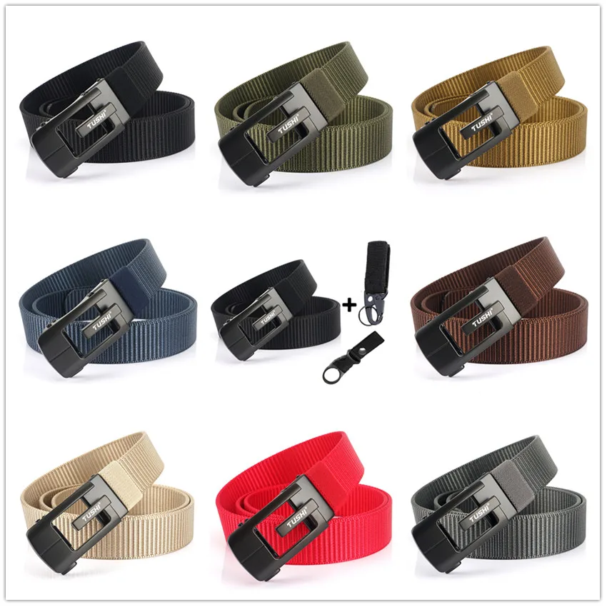 Ремень мужской с автоматической пряжкой, брезентовый дышащий тактический пояс для джинсов и брюк, износостойкий толстый нейлоновый, для улицы