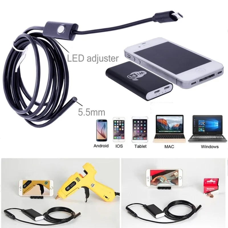 Цифровой Эндоскоп черный для Android и iOS, длина: 1 м, Диаметр объектива: 5,5 мм МП HD-камера 30 м беспроводной пульт дистанционного управления
