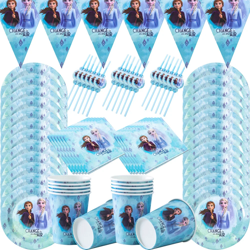 57 шт.лот, одноразовая посуда Disney для детей, украшение для дня рождения, Anna, Elsa, Princess