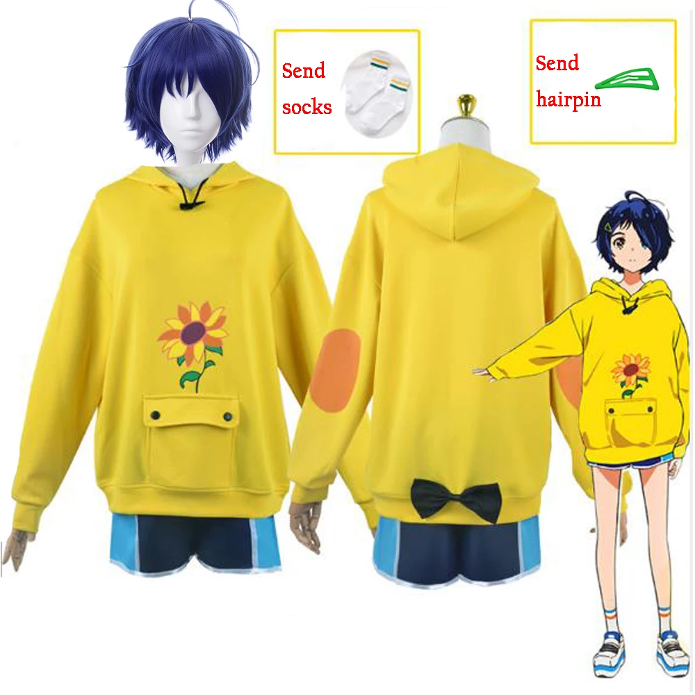 Wonder Egg Priority Ohto Ai пуловер с капюшоном аниме костюмы для косплея желтый Свитшот шорты парик носок комплект заколок
