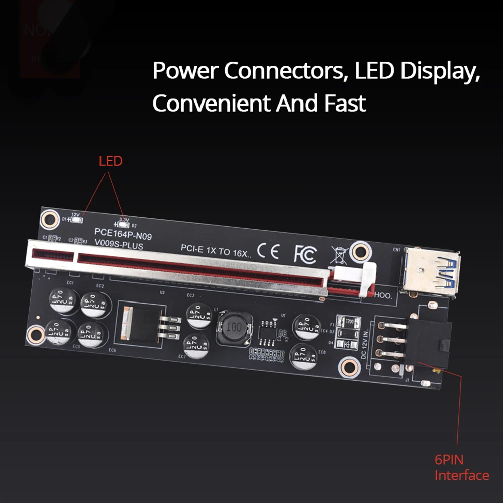 6 шт., Райзер VER009S Plus USB 3,0 PCI-E, Райзер VER 009S Express 1X 4x 8x 16x, Райзер-адаптер pcie, карта SATA, 15 контактов на 6 контактов питания