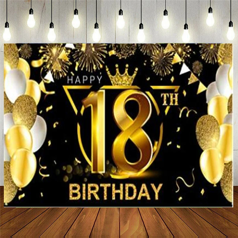 Баннер на 18-й день рождения, декорация для вечерние, плакат с надписью, Черное золото, товары для 18-летия, фон