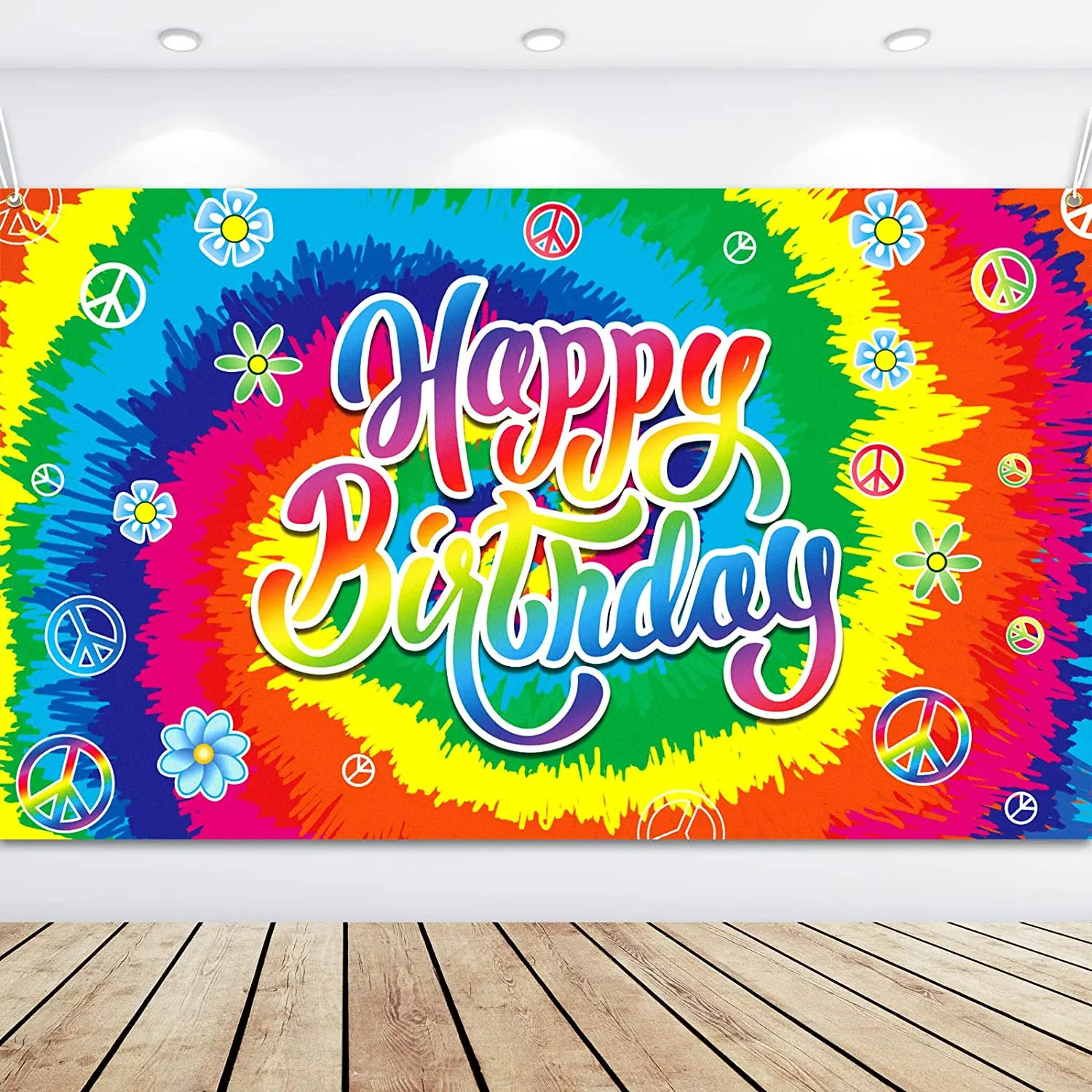 Галстук окрашенный День рождения баннер 60украшение для торта на день рождения на тему "Лошадки карусели" фон хиппи вечерние ринка Декор знак Радуга день рождения фон