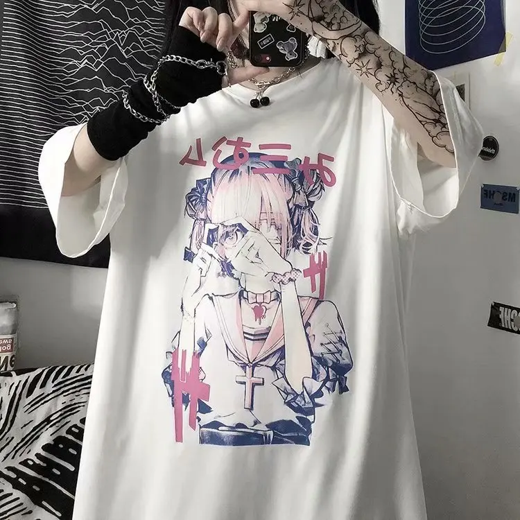 Новинка лета 2021 футболка с коротким рукавом с принтом для мужчин и женщин в стиле Ins Темный двухмерный стиль аниме в стиле Харадзюку
