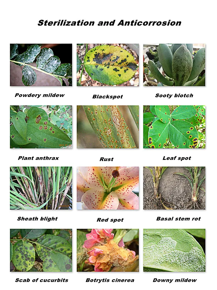 Он оказывает специфическое воздействие на болезни, вызванные басидиомицетами, такими как мозоли оболочки и wilt. Используется для отшелушивающего спрея и подкормки семян. Он был использован как специфическое лекарство для рисовой оболочки, но он редко используется в других культур, и эффект не является важным.