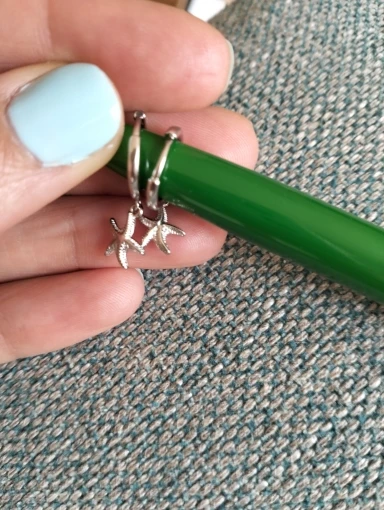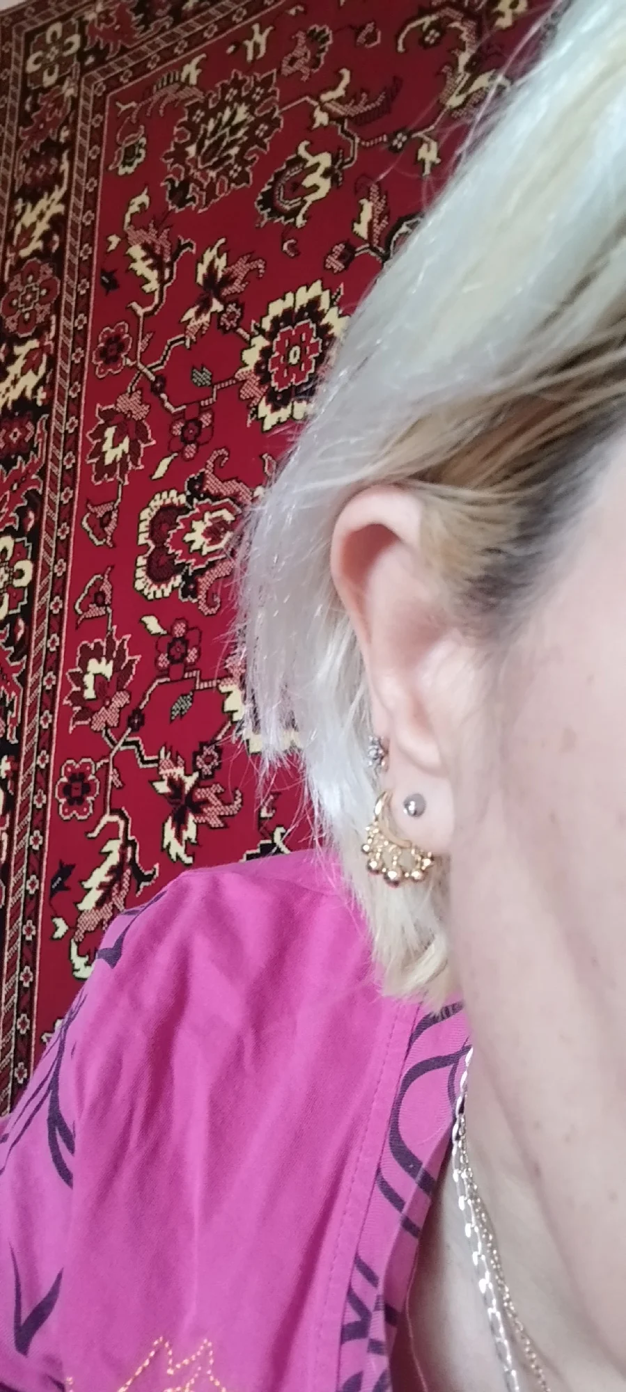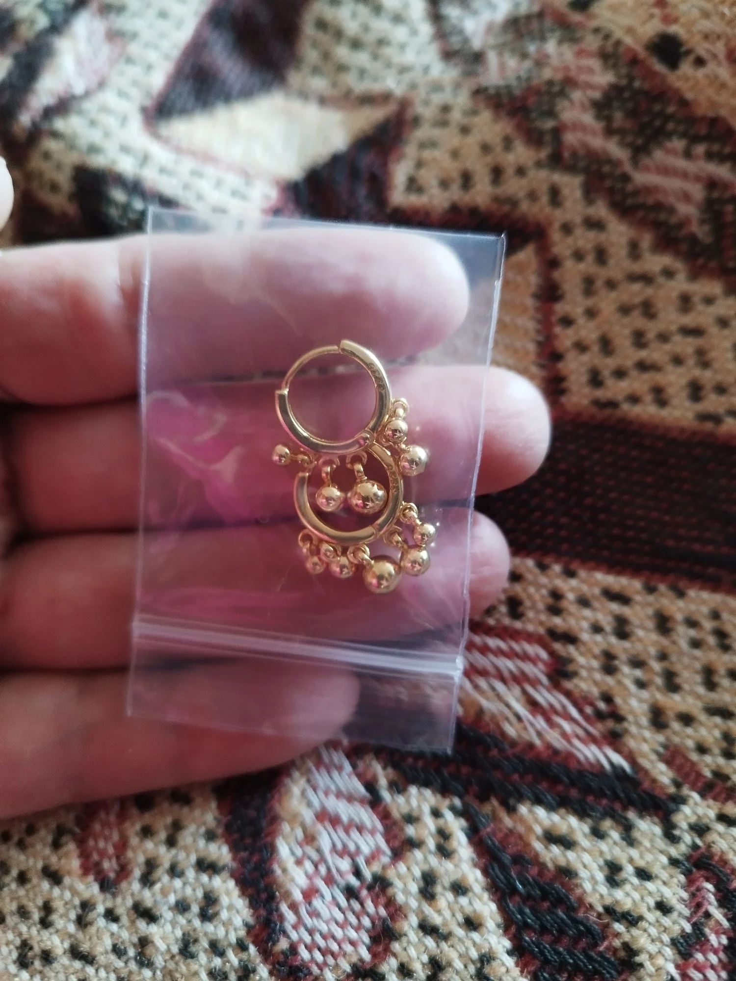 посылка пришла поздновато. Вина по видимому почты. Заказывала серьги как на фото серебристые. Пришли золотистые. У меня наверное период серебра. Очень хотела этого оттенка. Если честно думала не получу посылку вообще. На фото выглядят больше. Но такой размер понравился . Подумала и решила, что цвет не критично. Шарики при ходьбе красиво переливаются.