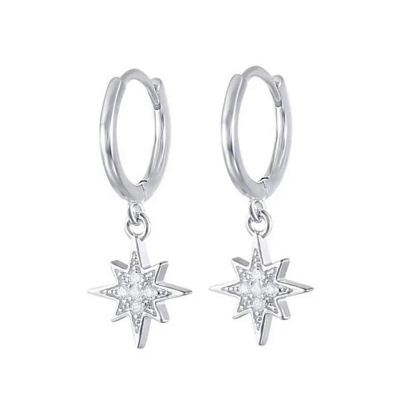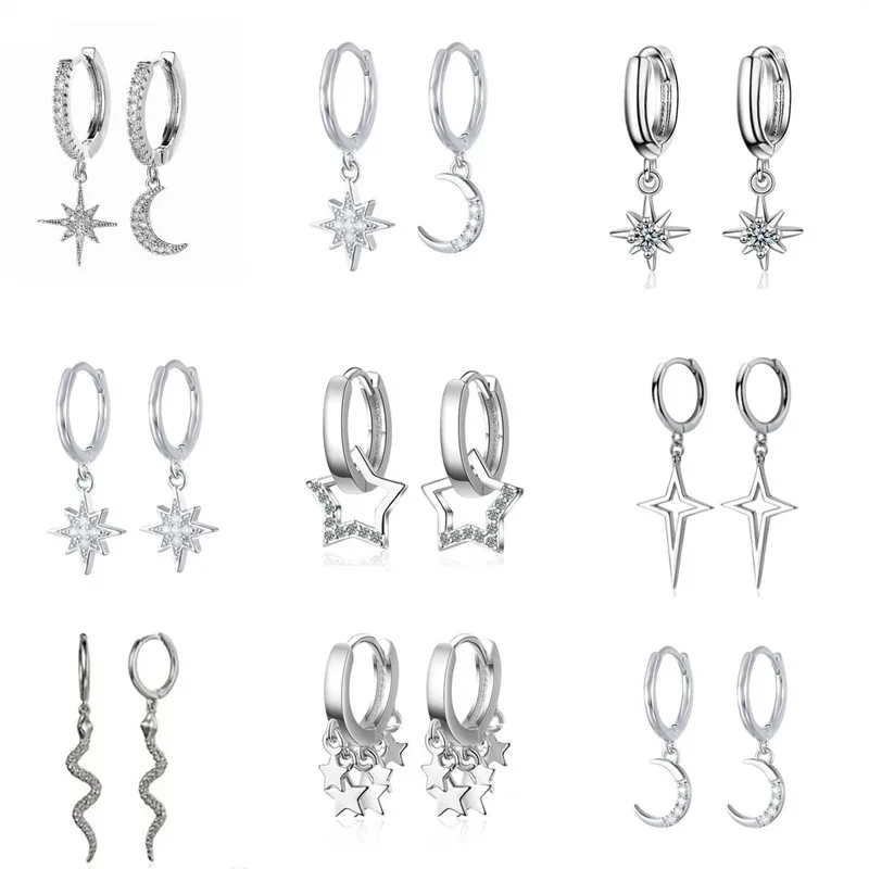 925 стерлингового серебра кисточкой Звезда Крест Браслеты с подвесками, обручальные серьги для женщин и девочек вечерние свадебные украшения A005