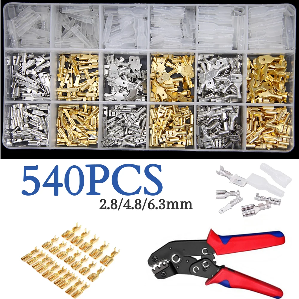 Обжимной клеммный соединитель, 540 шт.лот, 2,84,86,3 мм, Золотая латуньсеребро, для автомобильных динамиков, набор разъемов для электрических проводов