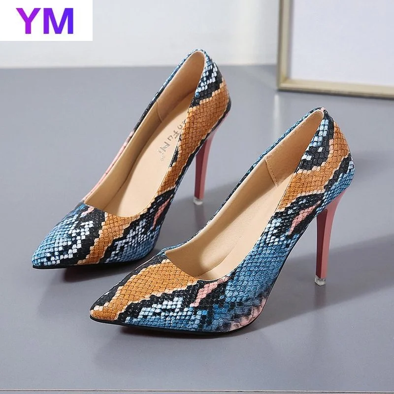 Туфли-лодочки женские без шнуровки, заостренный носок вечерние Классическая вечерняя Обувь, змеиный цветок, модные повседневные, 2021