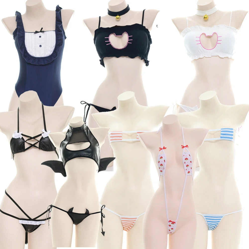 Женщина девушка сексуальное экзотическое женское белье одежда для сна бикини японские милые туфли с ремешками в стиле Лолита с низким вырезом на спине нижнее бельё для девочек Kawaii наряд горничной фартук платье