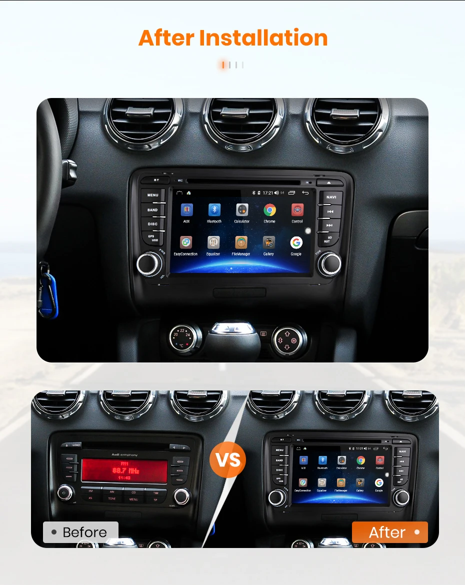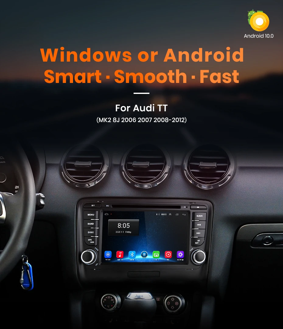 > Junsun автомобильное радио для Audi TT Особенности:Система Android 10,0 + 7 дюймов 2. Экран 5D IPS + разрешение 1024*600 + RAM/ROM:2 ГБ/32 ГБ + встроенный Wifi (4G dongles опционально) + gps-навигация (бесплатное обновление карты, только поддержка бренда Junsun) + управление рулевым колесом + зеркальная связь + Bluetooth-Совместимость + Встроенный микрофон + FM/AM + RDS + Поддержка функции USB ADAS DVR + Функция Europe DAB + Система контроля давления в шинах.(PS: у нас есть полностью 2 варианта на страницах, включая Wince/Android систему и различные RAM + ROM, пожалуйста, проверьте это осторожно при покупке.) > 24H * 7 поддержка обслуживанияВ Junsun Наша цель-продолжать усердно работать, чтобы сделать инновационное оборудование и программное обеспечение автомобильного мультимедийного плеера радио, чтобы дать вам этот индивидуальный опыт.Мы предоставляем обновления для прошивки, gps-навигационных карт бесплатно.