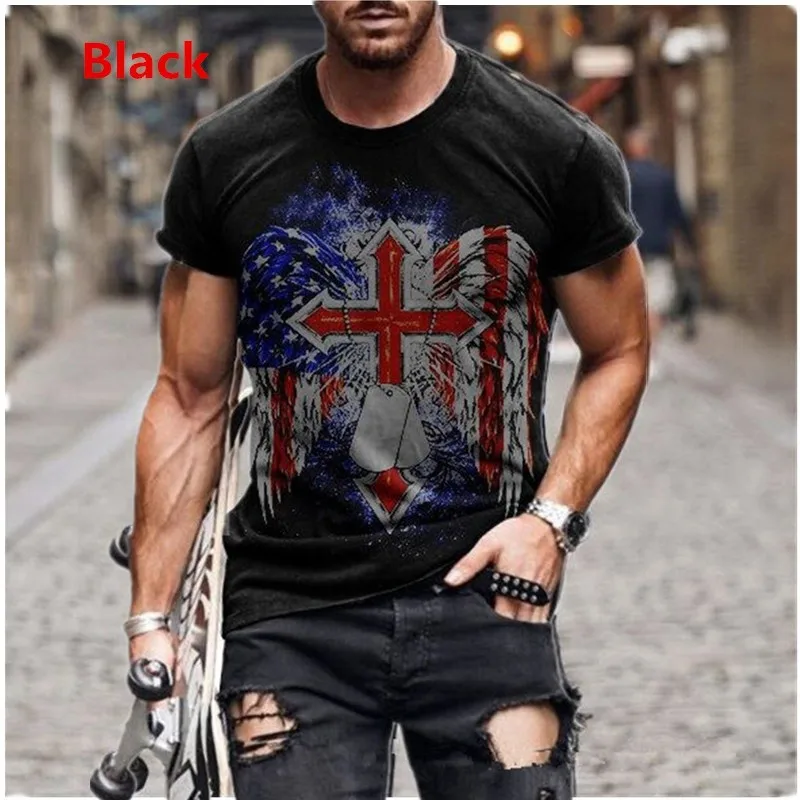 Новая популярная свободная футболка, мужская летняя футболка, модная Винтажная футболка с 3D-принтом флага, модная уличная одежда, мужская футболка