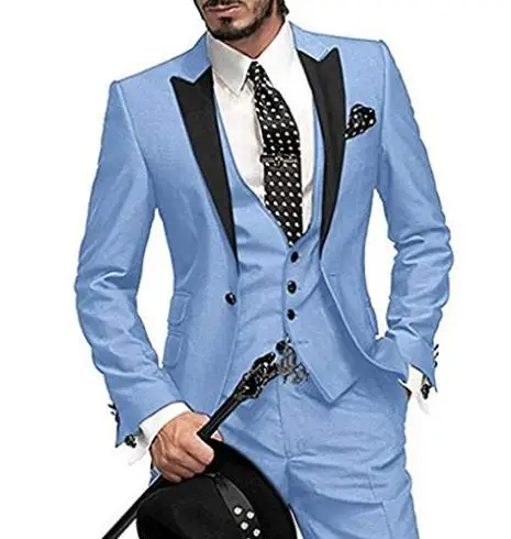 Хит продаж, темно-синий мужской деловой костюм, приталенный смокинг жениха, формальное платье, мужские свадебные костюмы, костюмы для выпускного (пиджак + брюки + жилет)