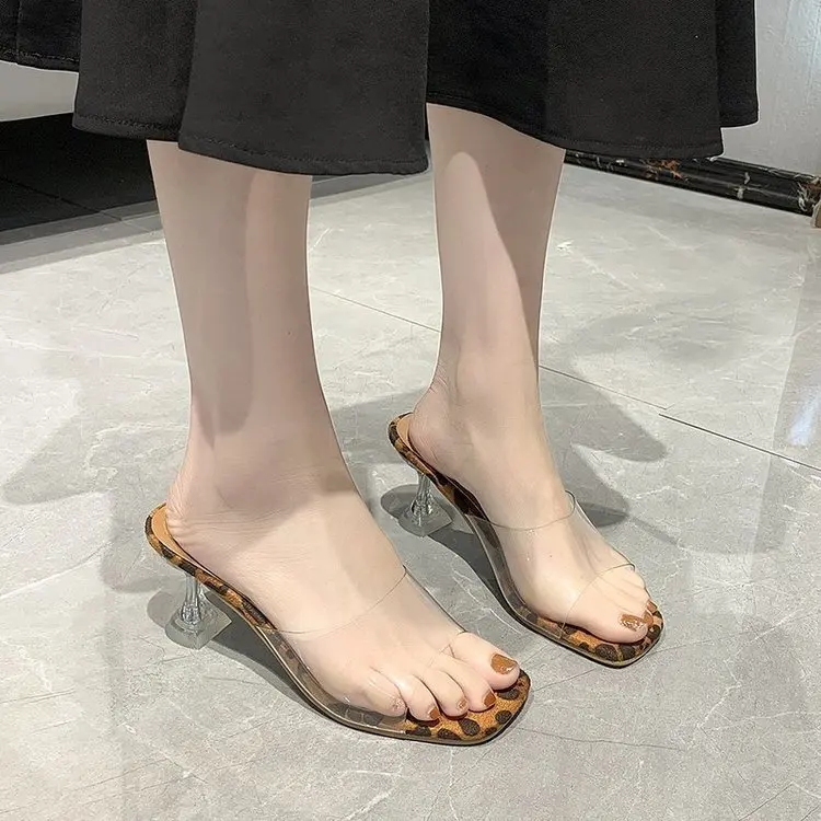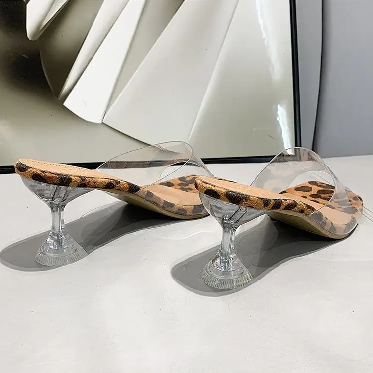 Сандалии женские прозрачные на тонком каблуке, с леопардовым принтом